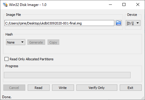 - Press ‘Write’ to flash the SD Card (this can take up to 10min).